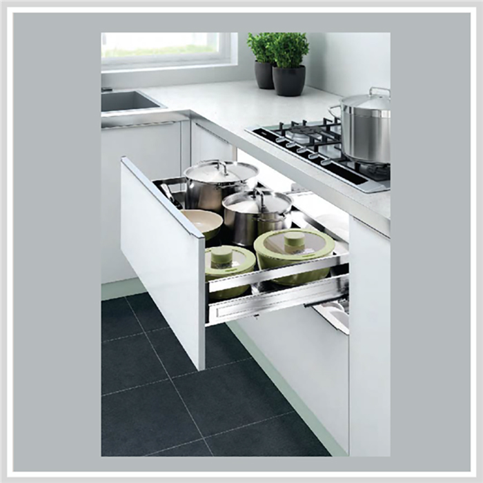 Bên cạnh đó thì giá để xoong nồi tủ bếp cũng thiết kế thông minh với ray giảm chấn lắp đặt 2 bên hông xoong nồi giúp hoạt động kéo ra - trượt vào mượt mà, tiện lợi, dễ dàng. Yếu tố này giúp giá để xoong nồi chịu lực tốt hơn, giảm thiểu tối đa việc bị bóp méo, hư hỏng mà các sản phẩm giá để xoong nồi khác không có được. Xét về các yếu tố thẩm mỹ, công năng sử dụng giá để xoong nồi inox mang đến gợi ý lựa chọn tuyệt vời cho tủ bếp của các gia đình.